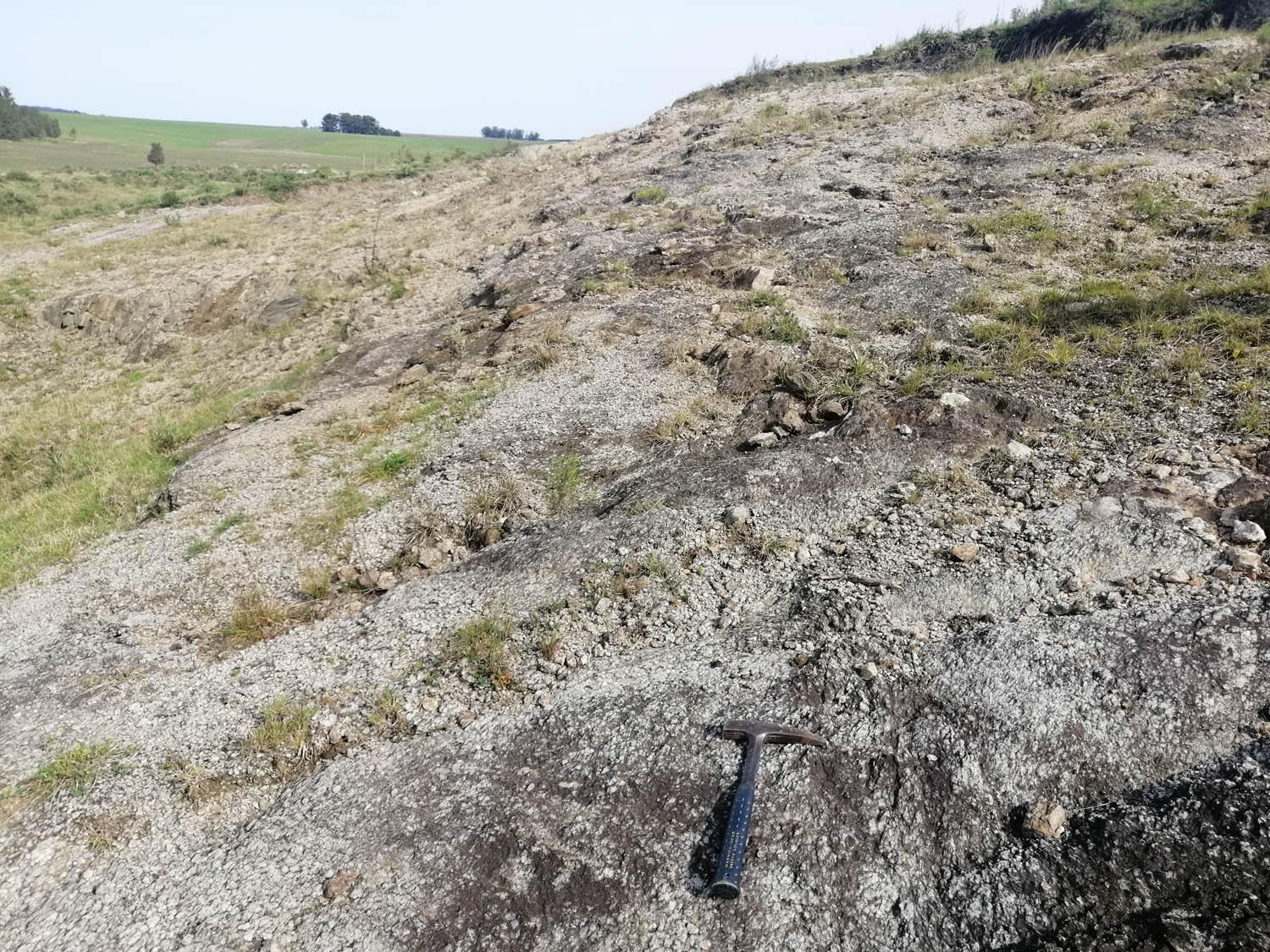Se conoce con la denominación de Basamento Cristalino de manera indistinta, a parte de las rocas más antiguas del país (Paleoproterozoico), en particular éstas integran al Terreno Piedra Alta, con una edad que ronda los 2100 millones de años, aproximadamente. En esta cantera, se pueden observar rocas graníticas, con cuarzo, feldespatos y biotitas (micas negras), que ocasionalmente son recortadas por diques centimétricos de minerales oscuros.