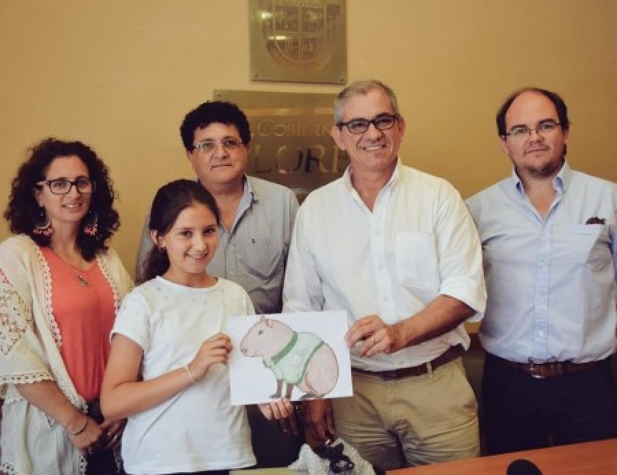 A través del concurso "Crea la mascota del Geoparque" premiamos a la niña Pilar Quintero por crear nuestra mascota, el Carpinchito Zemi, con nombre de cacique indio.
